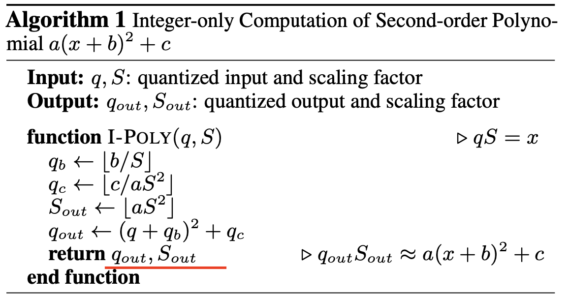 - quantized된 q와 scaling factor S 를 받았을 때 (x=qS) 이차함수 값을 리턴하는 (q_out*S_out = f(x)) 함수