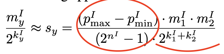 s_1, s_2, s_y : floating-point scalar 값, quantization step size를 의미, dyadic number로 근사할 수 있다 (k, m 모두 8bit)