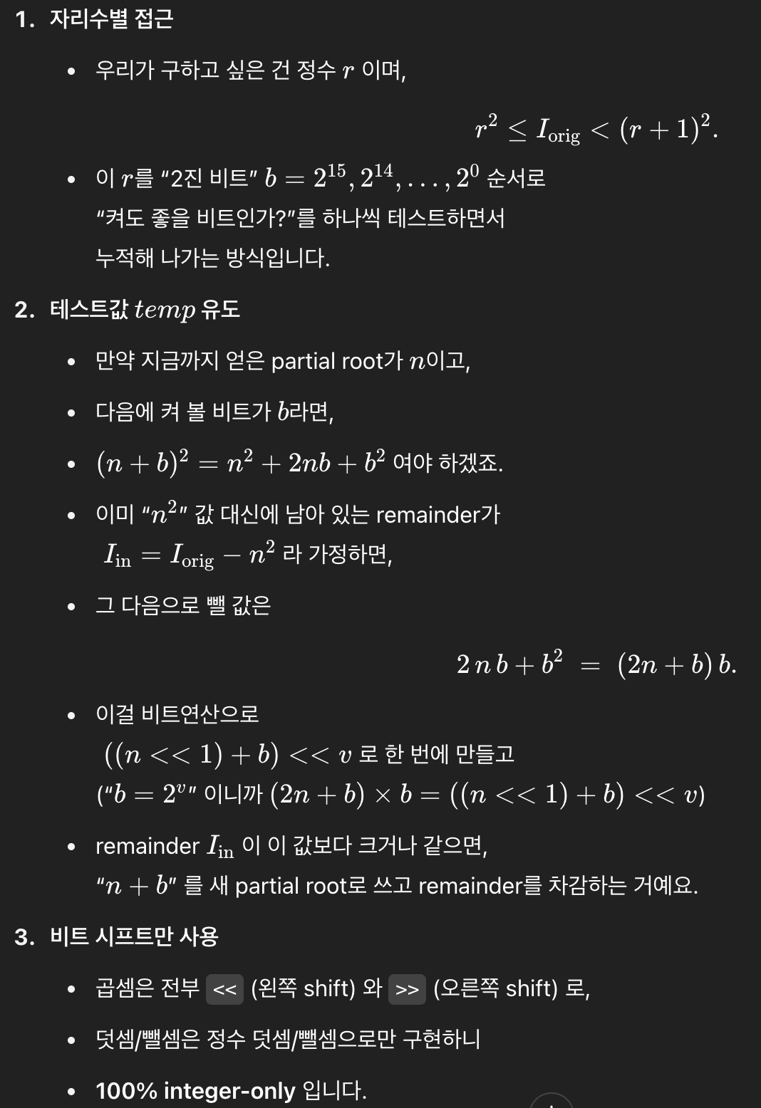 // 참고로 floor(log2( )) 연산은 MSB method나 right shift로 처리 가능