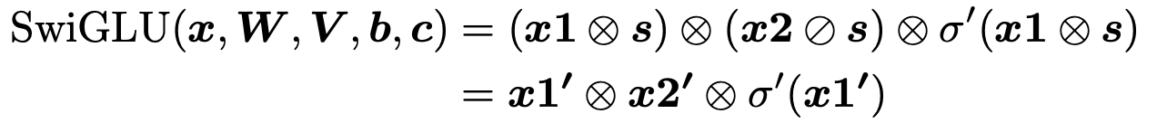 앞선 block reconsturciton stage에서 non-linear smoothing을 위해 SwiGLU 를 SiLU * x 로 분해했었음