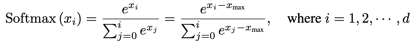 numerical stability를 위해 x_max를 뺀다, x_i <= x_max - 20 이면 exponential 취한 값을 0으로 취급해도 무방하더라