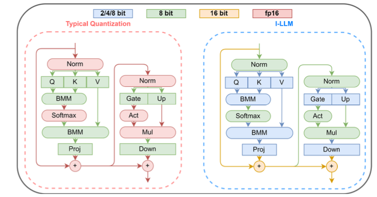 - softmax, normalization, SiLU 같은 non linear operator는 부분적으로 FP로 처리하더라