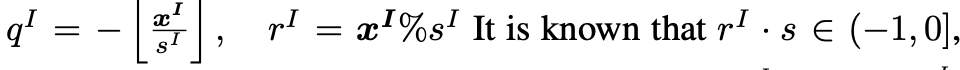 x를 정수부(1로 나눈 몫) + 소수부(1로 나눈 나머지)로 표현 가능, integer quantized된 상태에서 정수부를 구하려면 1/s scale down된 s_I로 나눠줘야 함, 소수부는 나머지에 다시 s를 곱해 scale up 해야겠지