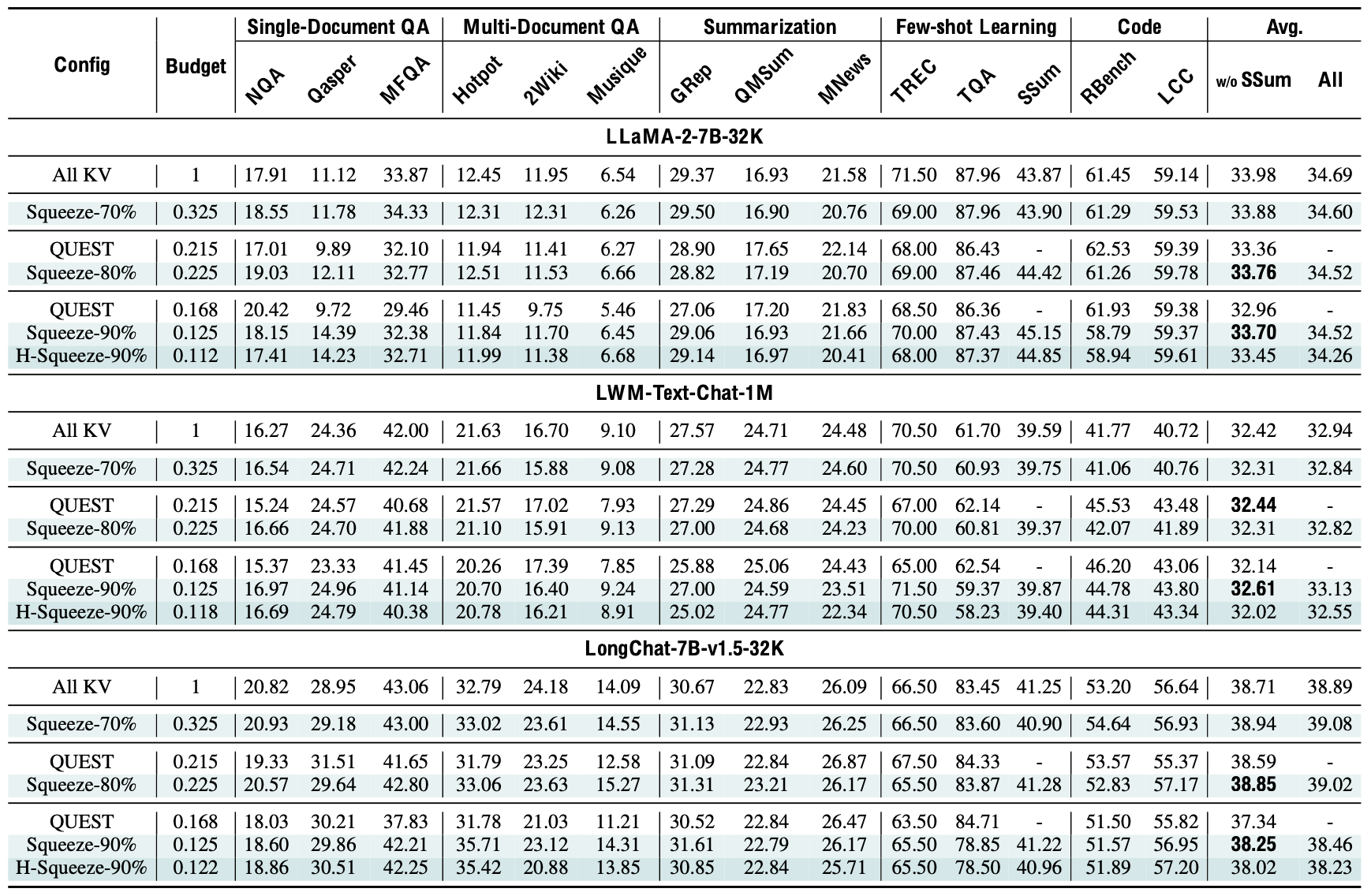 - QUEST: 연속된 KV cache entries들을 클러스터링, generate 시 동적으로 가장 관련있는 클러스터를 retrieve