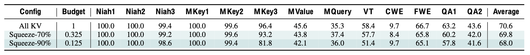 - 한계 = generation 도중 token importance가 dynamic하게 변한다면? 미리 구해둔 importance가 미래에 들어올 쿼리들을 잘 반영하지 못한다면? 이미 discarded된 token이 나중에 중요해진다면? => Squeezed Attention에서는 evict 하지 않는다