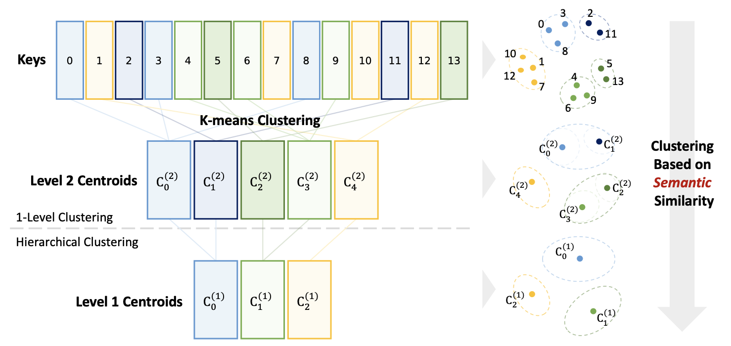- offline에서 fixed context에 대한 키들을 의미적 유사도(cosine similarity) 기반 클러스터링한다