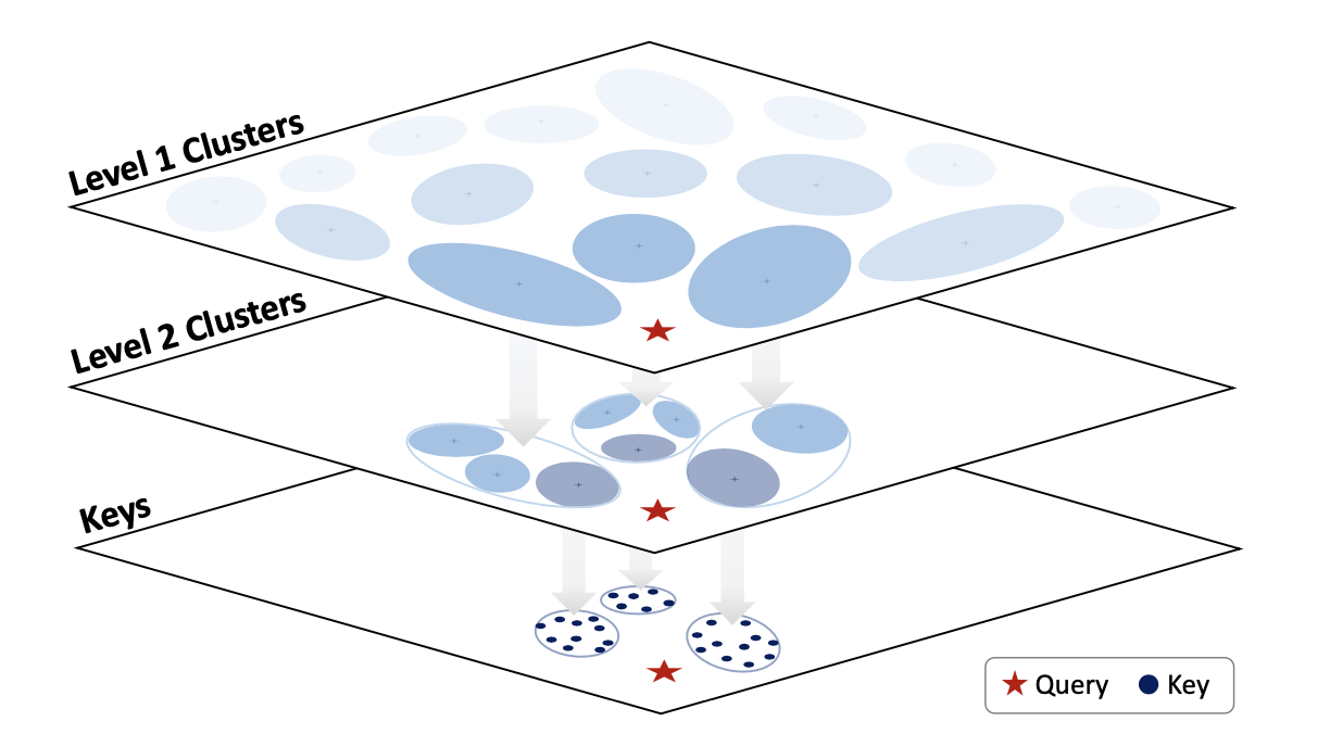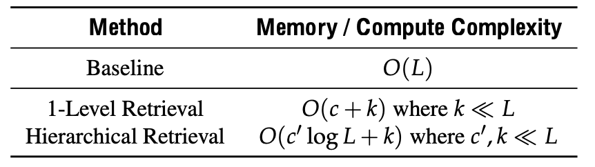 - k << L 은 실제로 retrieve하는 key의 개수 , logL 은 유지할 hierarchical level(depth)